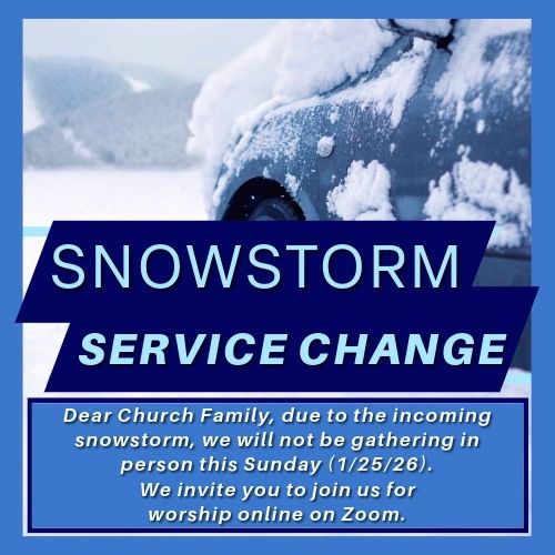 "Dear Church Family, due to the incoming snowstorm, we will not be gathering in person today...